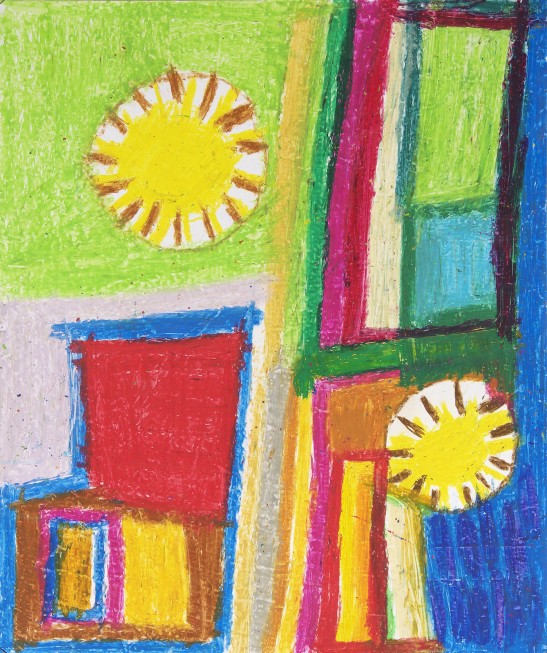 Composées de larges aplats colorés, celles-ci ressemblent, au premier abord, à des compositions géométriques abstraites. Il n'en est rien. Pour être décodée, sa peinture nécessite que l'on en maîtrise préalablement le vocabulaire. Si le soleil (généralement situé en haut à droite), les arcs-en-ciel, la lune et la neige sont assez aisément identifiables, les nuages sont, le plus souvent, de simples traits horizontaux, la pluie est représentée par deux paires de barres verticales de couleurs différentes et la nuit par une sphère noire sur fond noir. À ces signes liés à des considérations d'ordre temporel ou météorologique, s'ajoutent des objets tangibles : un cercle traversé de lignes horizontales est une guitare, un rectangle bleu surchargé de lignes ondulées blanches une piscine, un cercle moucheté de petits points un barbecue…